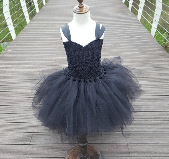 Train Tail Girls Black Tutu Bridesmaid Flower Girl Wedding Dress Tulle Ball Gown