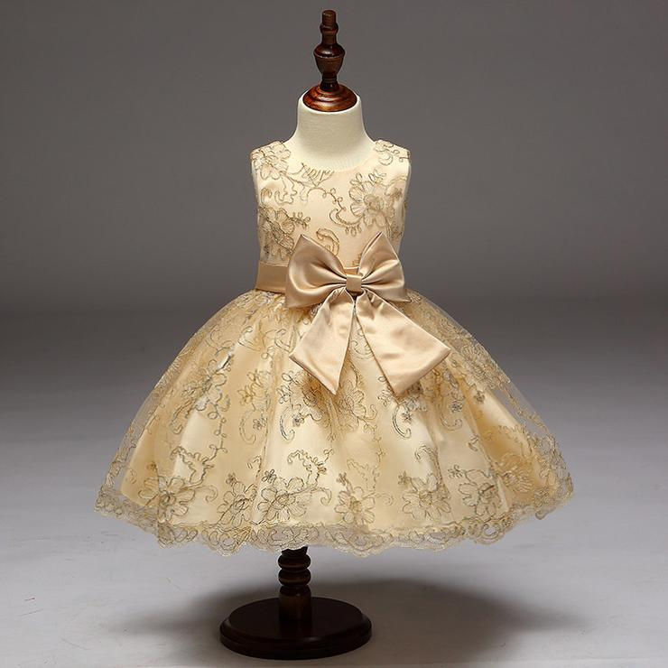 Flower Girls Dresses Champagne Applique Baby Girls Party Dress