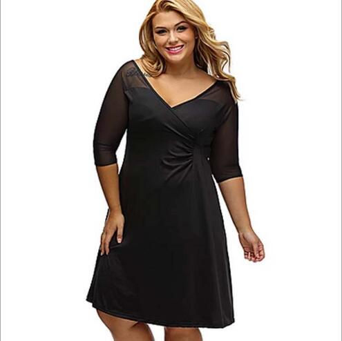 Plus Size Fashion V Neck Half Sleeve Work Midi Dress