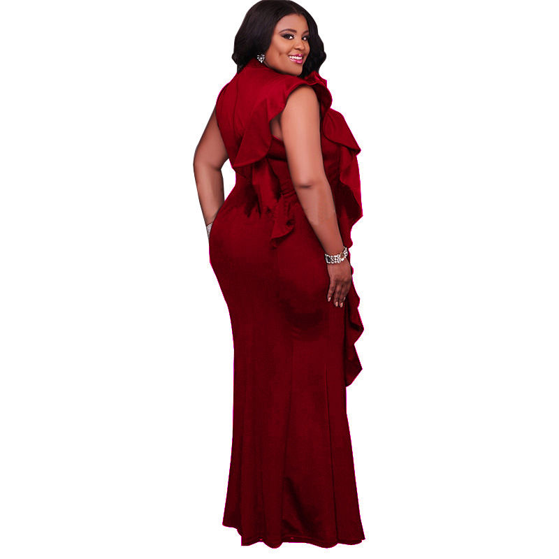 Plus Size Sleeveless Mermaid Solid Stand Collar Falbala Long Maxi Dress
